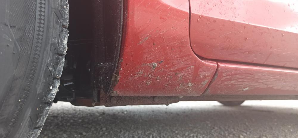 Hlavně jsou i chycené začátky prahů - důsledek chybějících předních zástěrek.