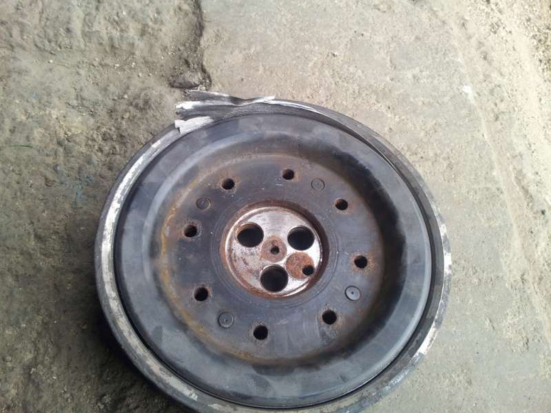 A zde přikládám obrázek původní řemenice, kterou jsem tam dal jen prozatím. Zezačátku dobrý, ale po 50 km to začlo dělat hrozný pazvuky, tak jsem s tím dál nejezdil a čekal na vyřešení reklamace a tohle na mě dneska juklo :mrgreen:
