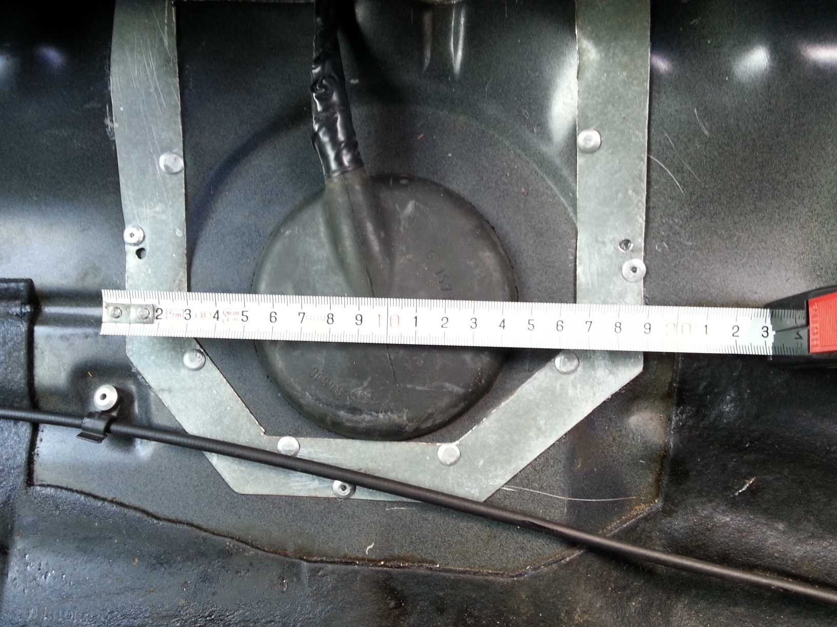 Je pak potreba tu diru dobre opracovat, aby pripadne otrepy a vibrace pri jizde nezpusobily, ze se prodre palivove vedeni