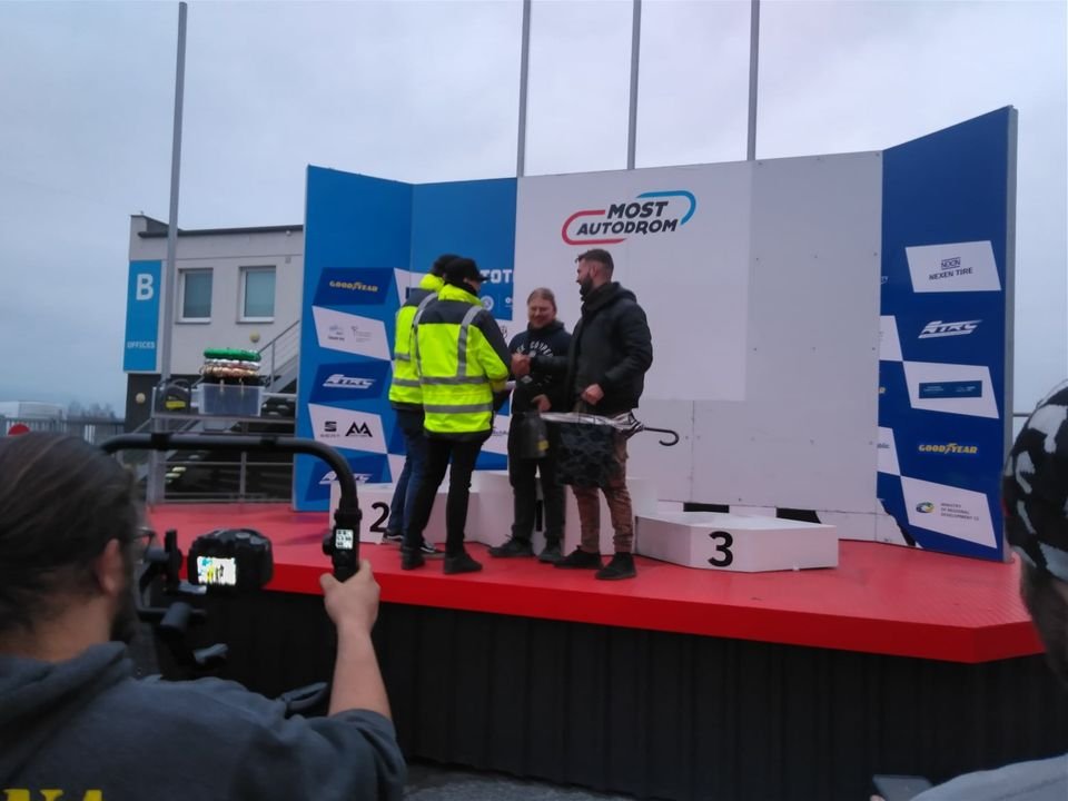 Stojím připravený a brácha přijíždí. Rychle nasedám s instrukcema, že brzdy i gumy jsou v pohodě, ale že jde blbě řadit dvojka. Vyrážím na trať a snažím se dohnat co se dá. Ve druhém kole mi bohužel ve vracáku z dvojky nejde zařadit trojka a následně už žádný kvalt. Musel jsem BO!!! odklidit z tratě pryč na trávu. Bohužel jsem dojel tak neštastně, že si mě ani jeden ze dvou traťových komisařů nevšiml, idkyž jsem tam mával jako o život. Takže jsem zabil asi tři minuty behěm do jeho kukaně, než vyvěsili červenou vlajku... Na laně mě potom dotáhli do depa, kde jsme během 10ti minut opět zprovoznili táhla a já mohl znovu vyjet na trať. Snažil jsem se jet co nejrychleji, ale zase trochu s rozumem, abych to nebylo zbytečně přehnané a nebylo víc škody, než užitku. Kroužil jsem a předjížděl, co se dalo a na co BO!!! technicky stačilo. Prí nájezdu do mého posledního kola v tomhle střídání už kluci mávali, že mám jet na výmenu. Cestou do depa, která od značky byla omezena z 60 km/h na 40km/h jsem se díval na mobil a podle aplikace Race Chrono jsem zajel čas 2:14:9X. Následně od pořadatelů podle časomíry potvrzeno a byl to v tu chvíli nejrychleší čas závodu. Co si budem, hodně to překvapilo, potěšilo a zahřálo! Pravděpodobně tady se asi stalo to, že se ze závodění mezi posádkami, přeslo v závod mezi námi o nejlepší čas :hah: