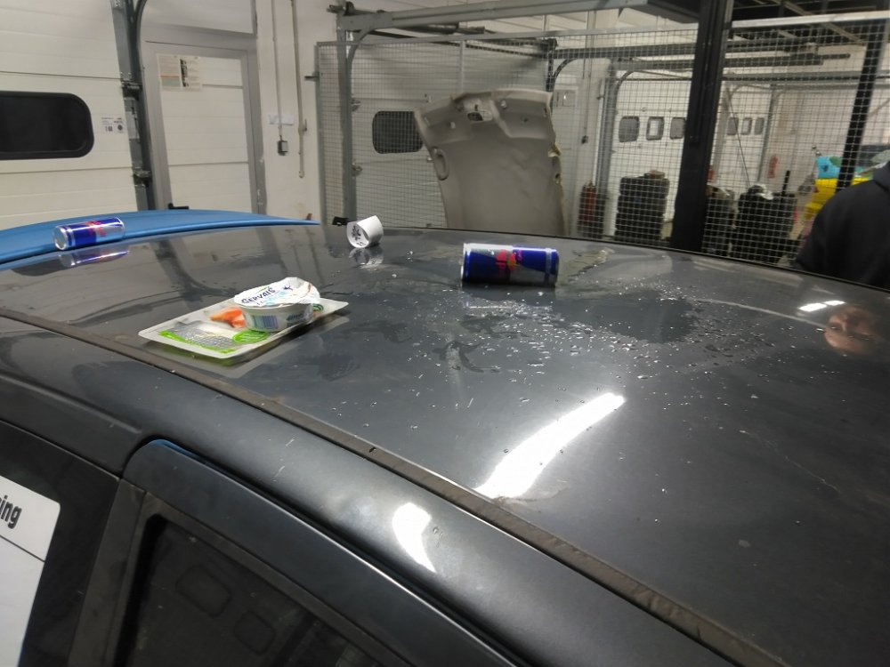Večer před závodem nějaký cyp skákal po střeše a rozlil plechovky